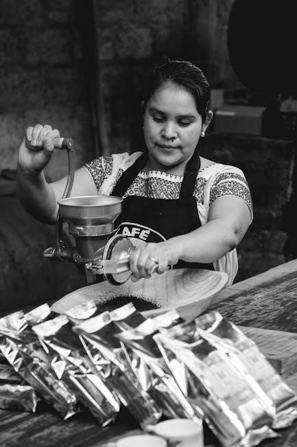 Vintage manual coffee grinders add a touch of elegance to coffee stations. Place them on countertops or shelves to create a focal point. Pair the grinder with complementary items like antique coffee cups, classic brewers, or vintage-themed accessories. This setup not only highlights craftsmanship but also tells a story of coffee’s heritage; Ensure the grinder is clean and well-maintained to enhance its appeal. Displaying it near your brewing area showcases its functionality and adds charm to your coffee-making ritual, making it a conversation starter for guests.