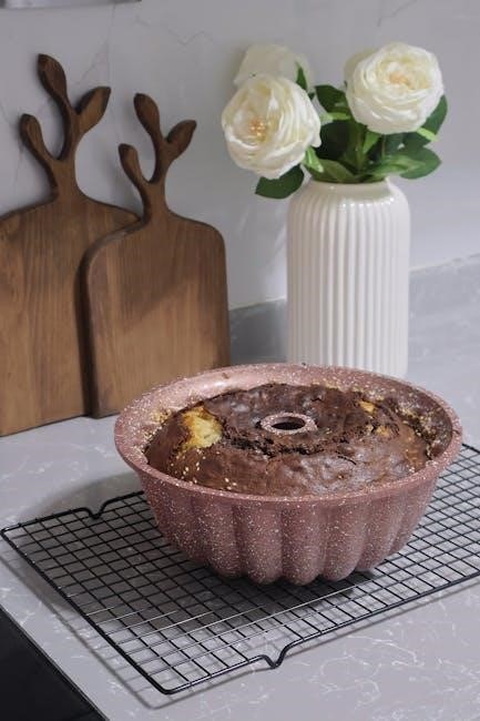 PDF guides typically advise checking for doneness using a toothpick inserted into the center – a clean removal indicates readiness. It’s crucial to avoid overbaking, which can lead to a dry cake. Always consult the specific instructions accompanying your pan for precise timing, as variations exist.